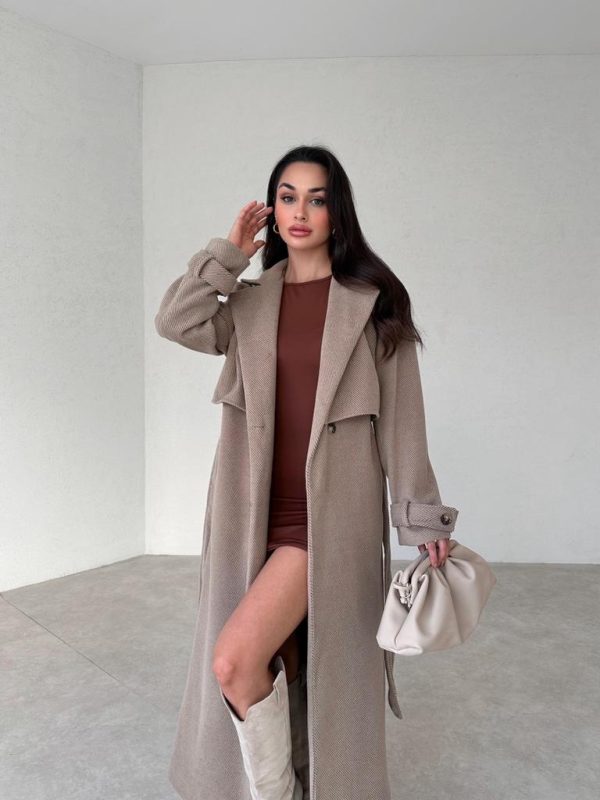 - Desen Geçişli Maxi Boy TATE Kaban tam kalıplıdır.