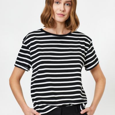 Bol Kesim Çizgili Tişört – Beyaz Çizgili