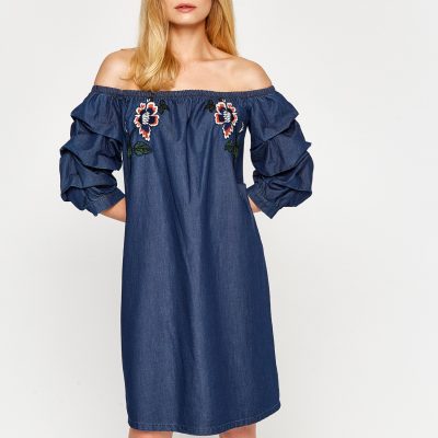 İşlemeli Jean Elbise