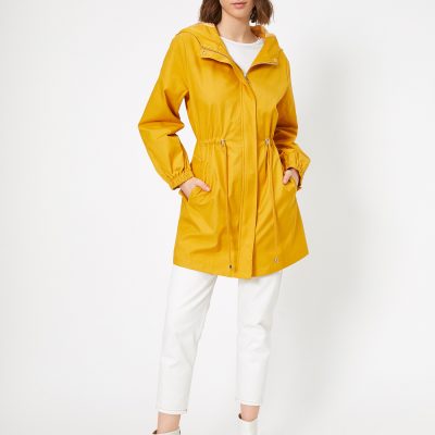 Beli Ayarlanabilir Kapüşonlu Trençkot – Hardal