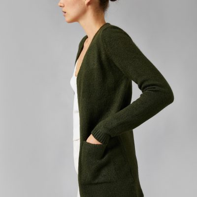 Uzun Kollu Cepli Triko Hırka