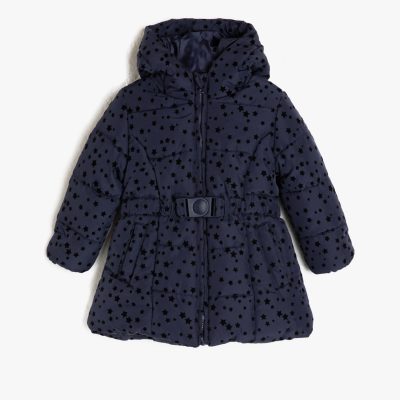 Kız Çocuk Kapüşonlu Uzun Kaban Bej
