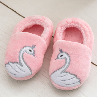 Kuğu Nakışlı Kadife Banyo Terliği