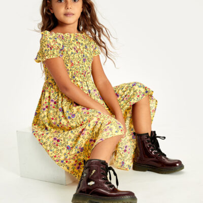 Kız Çocuk Çiçekli Viskon Elbise