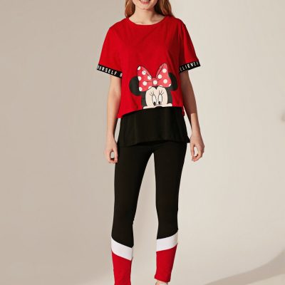 Minnie Mouse Baskılı Pamuklu Tişört Ve Atlet