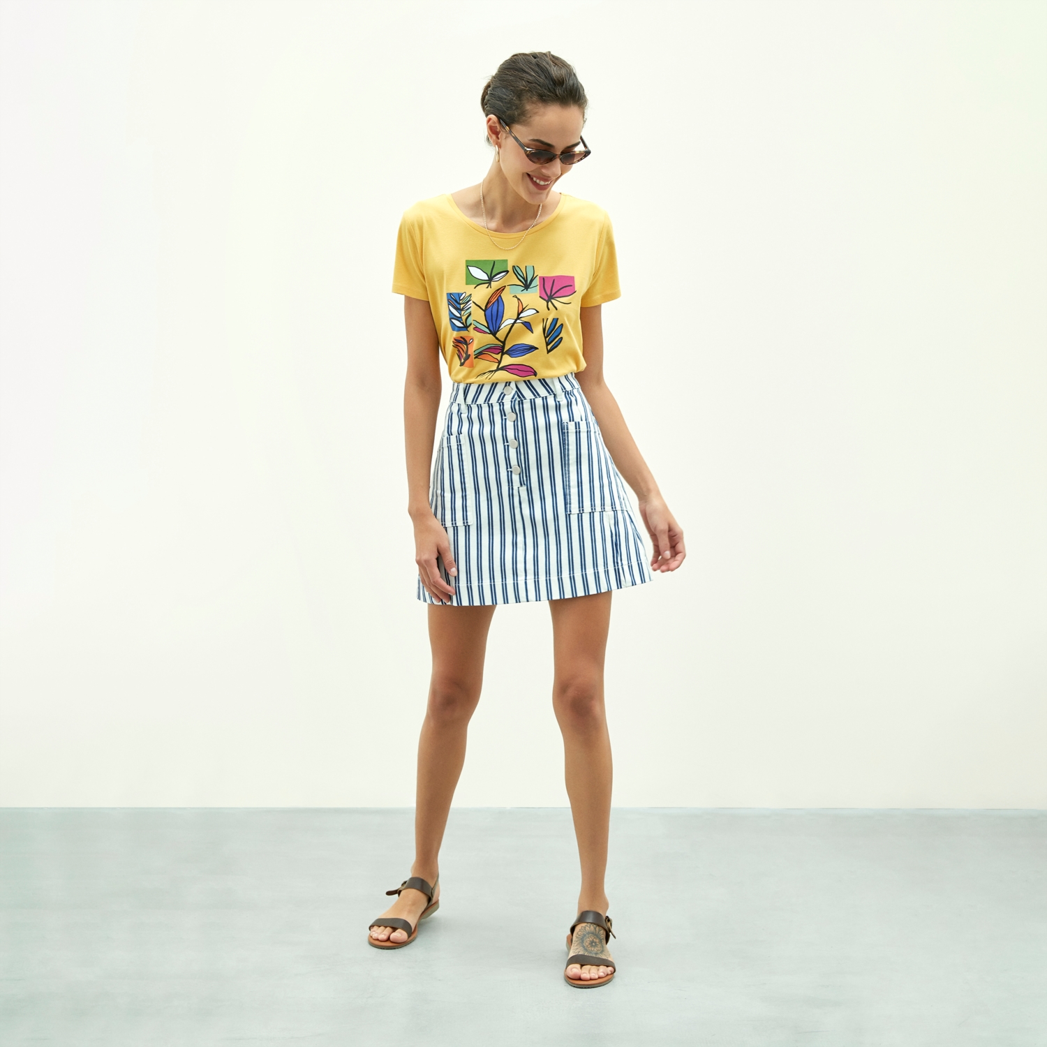 Ekru Biye Geçişli Tshirt